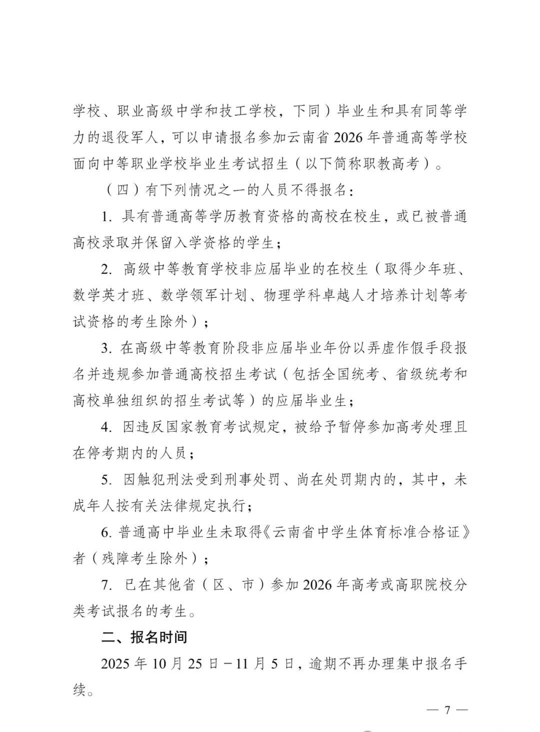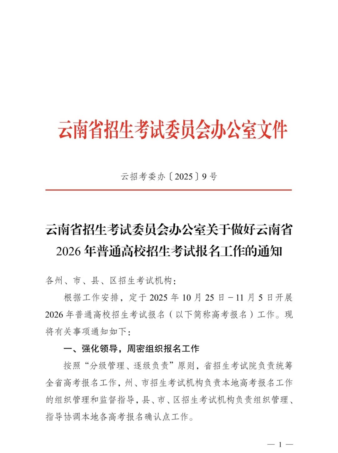 2026年普通高考报名时间为10月25日